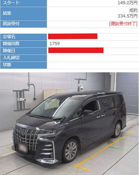 オートオークションの落札価格: