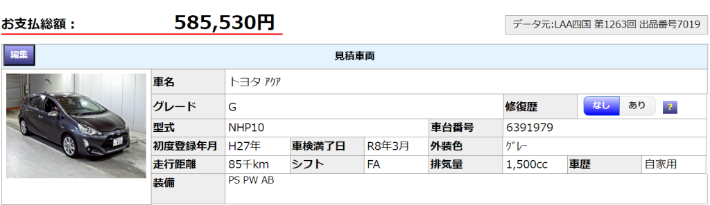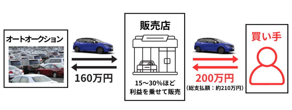 実際にオークションと中古車店の販売価格ではどのくらいの差があるのか、、、