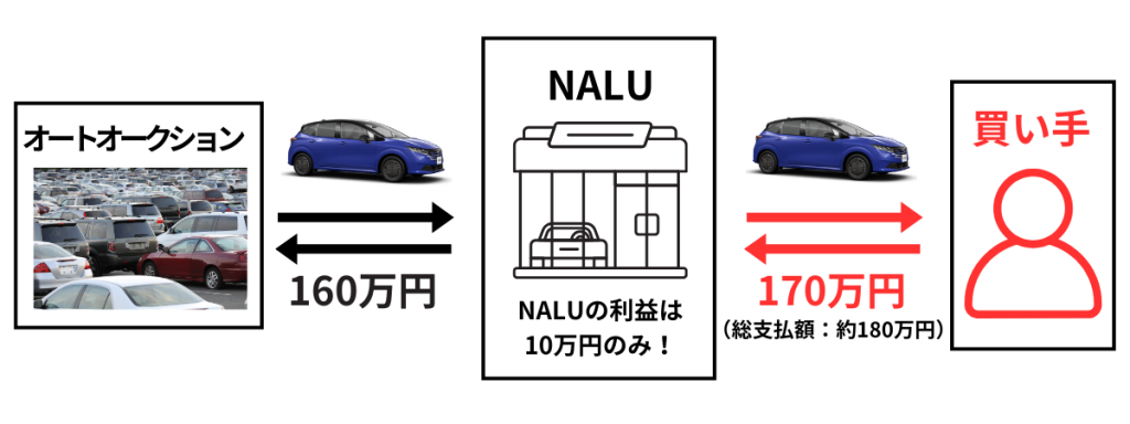 普通の販売店では在庫を多数抱えているため、維持費や広い土地、スタッフが必要になるため販売価格が高くなっています。