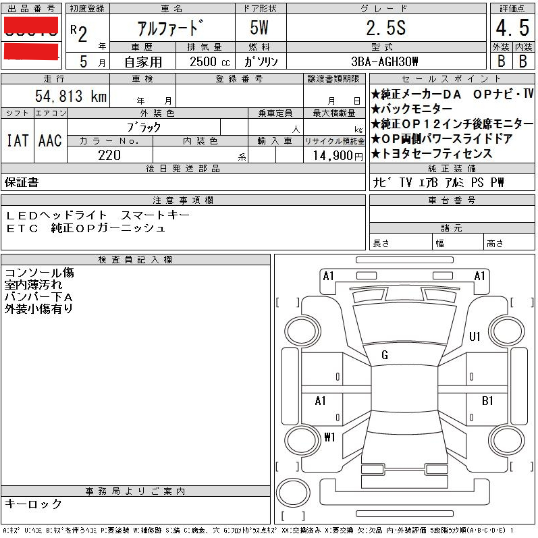 (例)アルファード/令和2年/走行距離:約5万㎞の場合 アルファード/グレード:2.5S/令和2年/走行距離:約5万㎞/2WD