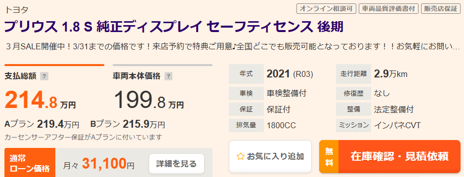 気になる販売価格(総支払額)は、、、